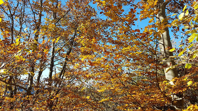 Al otro lado del valle se entra en un bosque de hayas, hay una senda que va en