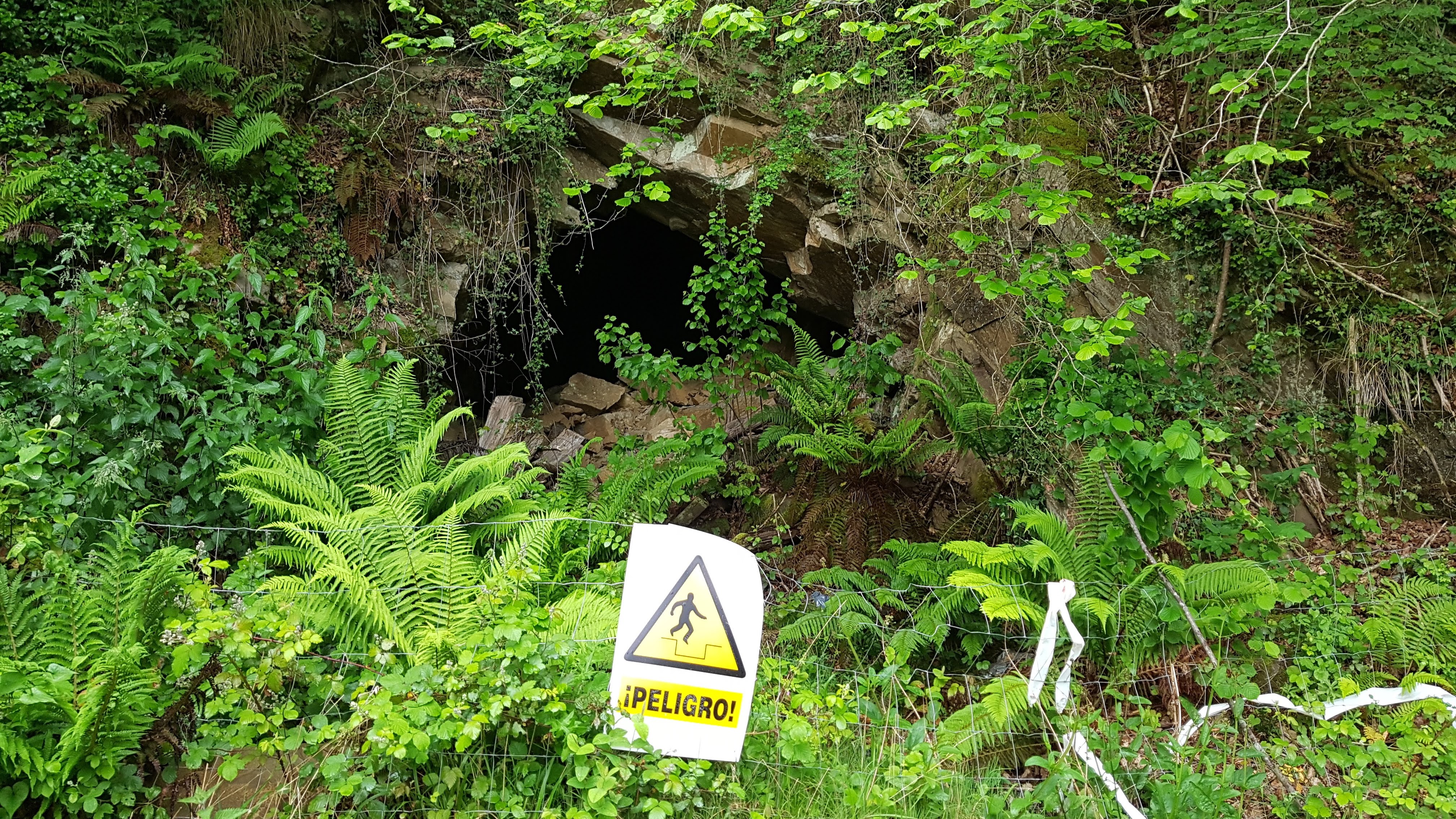Al poco de comenzar a subir han señalizado y vallado la entrada a una bocamina que amenaza venirse a bajo. Hunosa ha estado marcando y acotando todas las galerias y chimeneas de las antiguas minas, que eran un peligro. Muchos cazadores han perdido sus perros al caer por una de estas chimeneas, personas no suelen desaparecer porque son terrenos muy cerrados de vegetación donde están, y ya actúa esta como barrera.